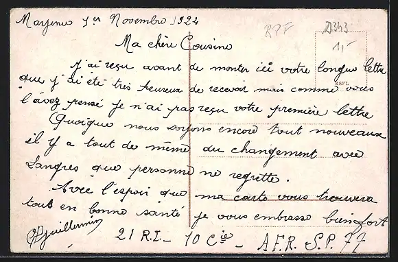 ungelaufen, Rückseite beschrieben 1922, guter Zustand