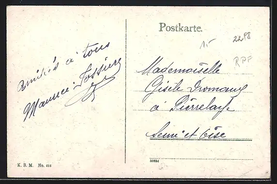 alte Ansichtskarte, ungelaufen, Rückseite beschrieben, Eckknick links unten, guter Zustand