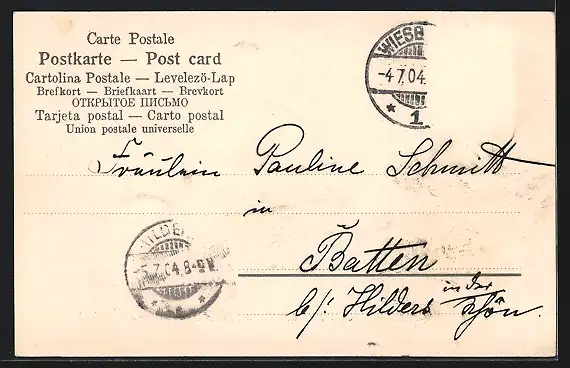 alte Ansichtskarte, gelaufen 1904, Briefmarke entfernt, Stempelspur, guter Zustand
