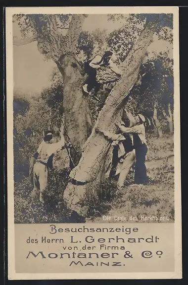 AK Mainz, Ernte des Korkholzes, Firma Montaner & Co.