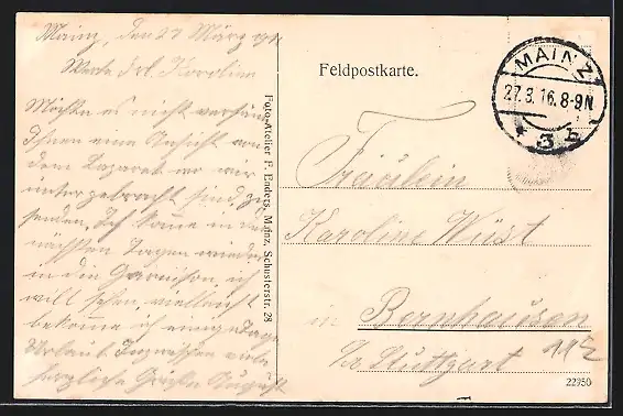 alte Ansichtskarte, gelaufen 1916, Stempelspur, guter Zustand