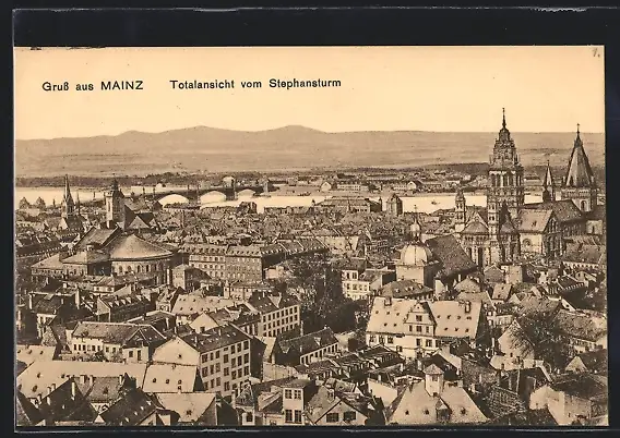 AK Mainz, Gesamtansicht vom Stephansturm