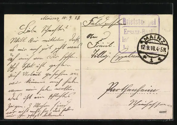 alte Ansichtskarte, gelaufen 1918, Bugspur oben mittig, guter Zustand