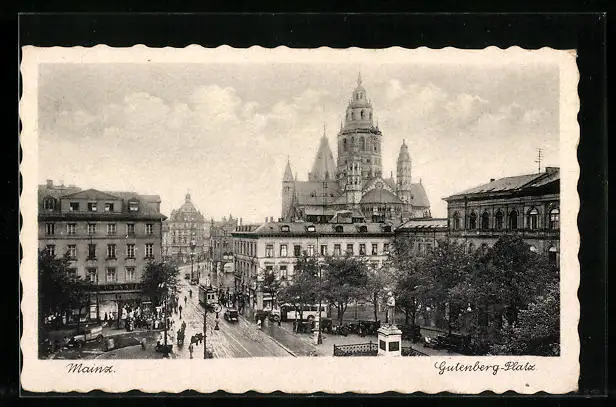 AK Mainz, Gutenberg-Platz mit Strassenbahn