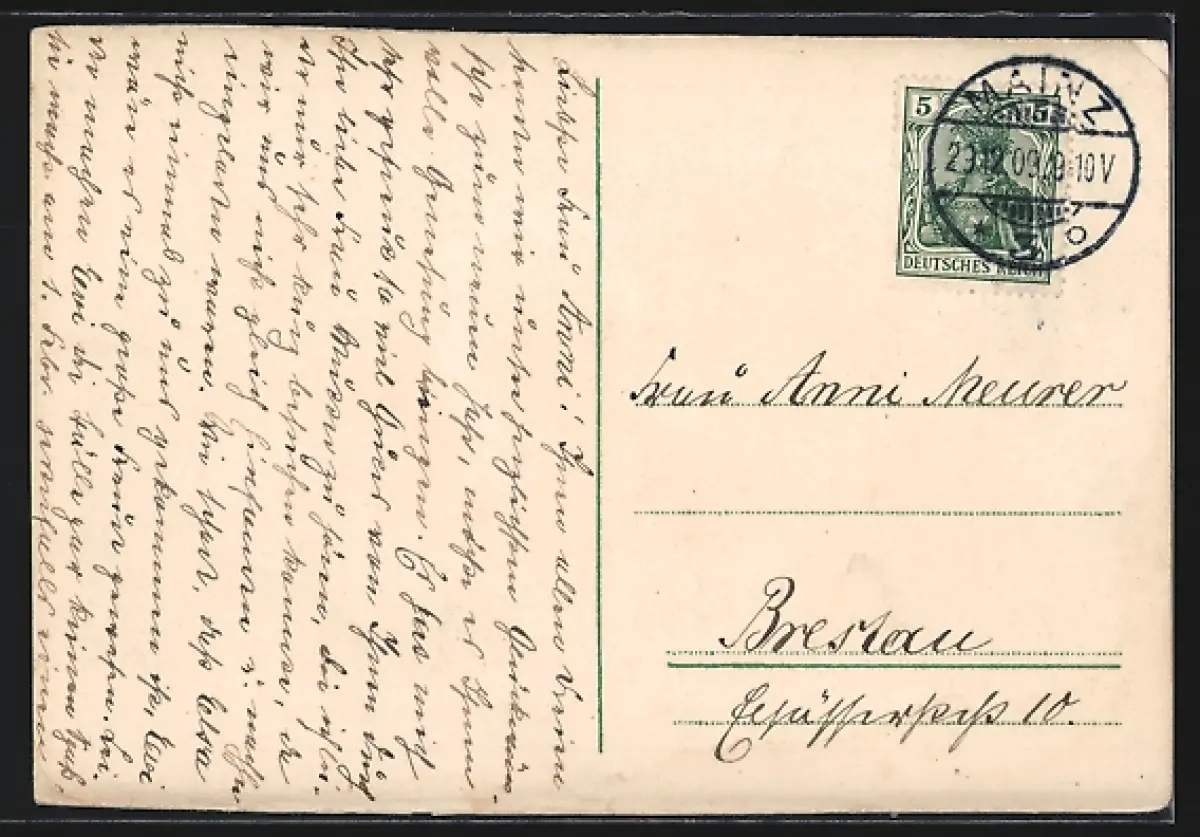 alte Ansichtskarte, gelaufen 1909, Eckknick unten rechts, guter Zustand