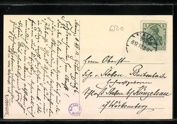 alte Ansichtskarte, gelaufen 1912, Abriebspur li. unten, Eckknick li. oben, guter Zustand