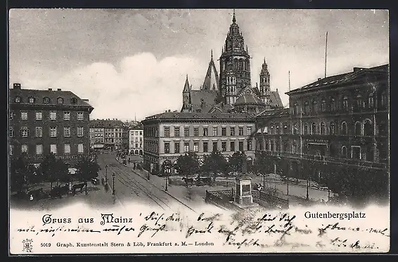 AK Mainz, Gutenbergsplatz aus der Vogelschau
