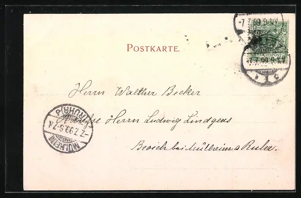 alte Ansichtskarte, gelaufen 1899, guter Zustand