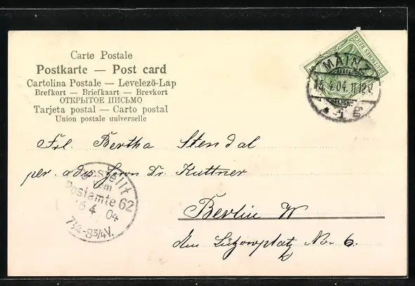 alte Ansichtskarte, gelaufen 1904, guter Zustand