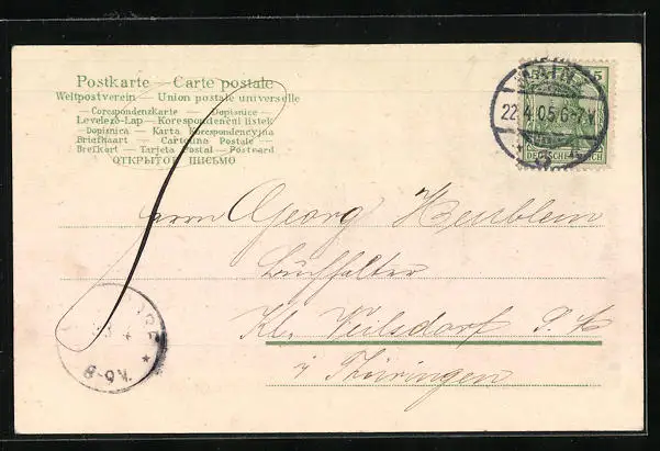alte Ansichtskarte, gelaufen 1905, guter Zustand