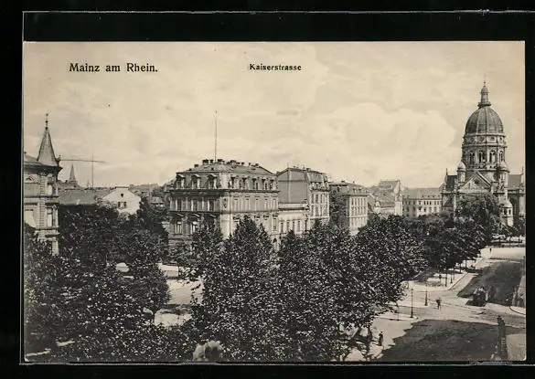 AK Mainz, Kaiserstrasse aus der Vogelschau