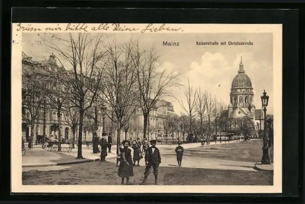 AK Mainz, Kaiserstrasse mit Christuskirche