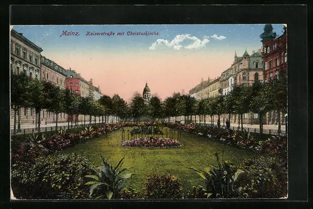 AK Mainz, Kaiserstrasse mit Christuskirche