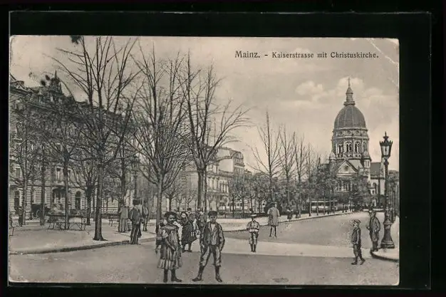AK Mainz, Kaiserstrasse mit Christuskirche