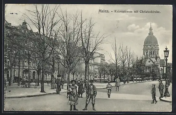 AK Mainz, Kaiserstrasse mit Christuskirche