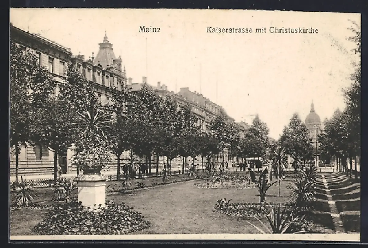 AK Mainz, Kaiserstrasse mit Christuskirche