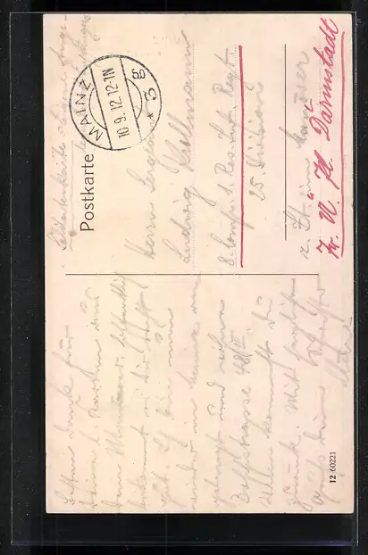 alte Ansichtskarte, gelaufen als Soldatenkarte 1912, guter Zustand