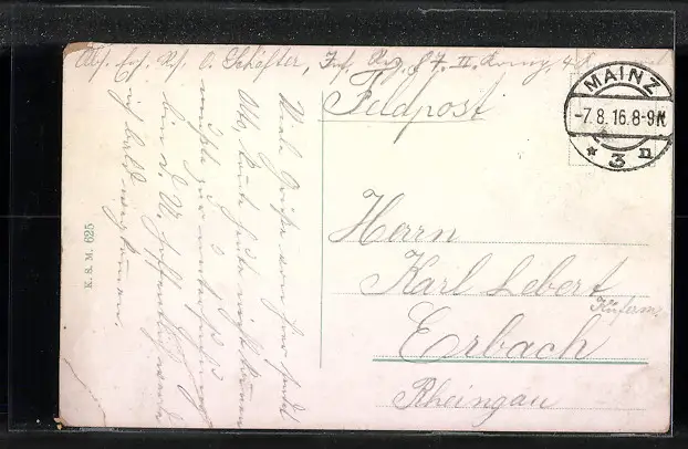 alte Ansichtskarte, gelaufen 1916 als Feldpost, Knick oben li., Ecke re. oben bestoßen, guter Zustand