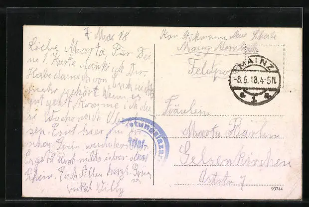 alte Ansichtskarte, gelaufen als Feldpost 1918, guter Zustand
