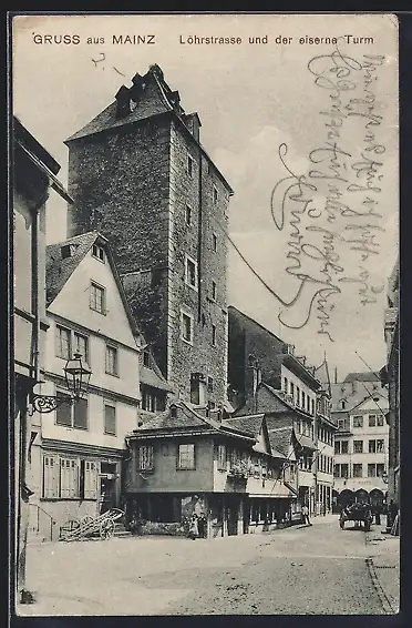 AK Mainz, Löhrstrasse und der eiserne Turm