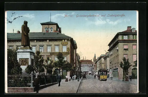 AK Mainz, Ludwigstrasse mit Strassenbahn