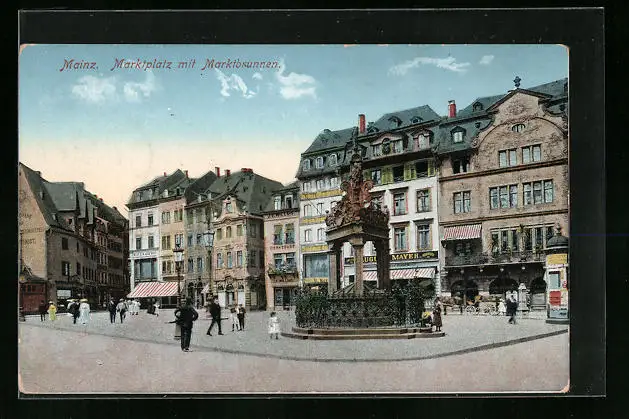 AK Mainz, Marktplatz mit Marktbrunnen