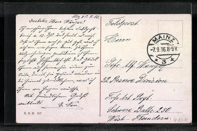 gelaufen als Feldpost 1916, guter Zustand