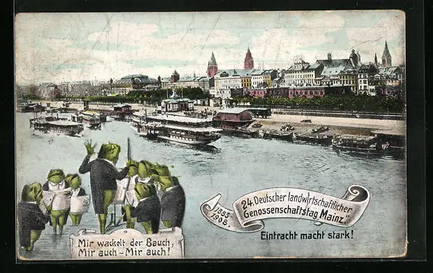 AK Mainz, Ortsansicht mit Dampfern und Froschchor