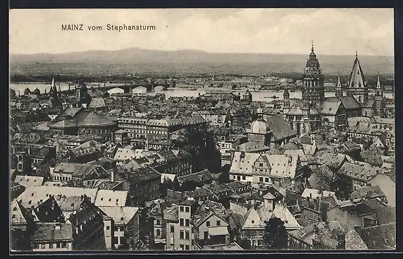 AK Mainz, Ortsansicht vom Stephansturm aus