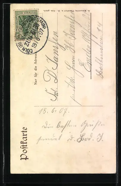 alte Ansichtskarte, gelaufen 1907, Bugspur oben li., guter Zustand