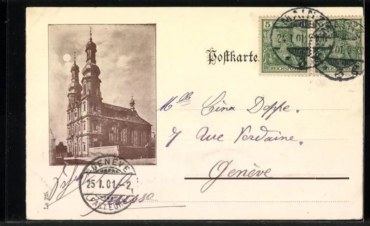 alte Ansichtskarte, gelaufen 1901, Eckknick oben re., guter Zustand