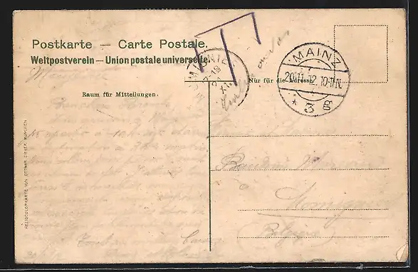 alte Ansichtskarte, gelaufen 1912, Eckknicke unten, guter Zustand