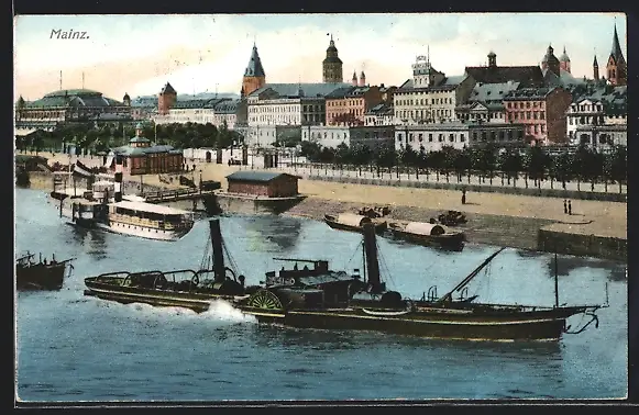 AK Mainz, Rheinpartie mit Dampfer Mathias Stinnes