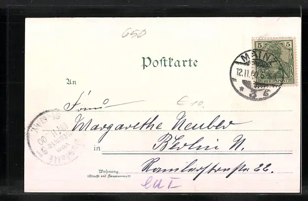 alte Ansichtskarte, gelaufen 1900, Stempelspur, guter Zustand