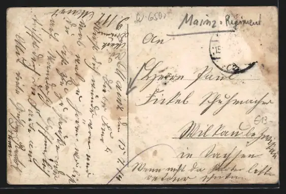 alte Ansichtskarte, gelaufen, Briefmarke entfernt, guter Zustand