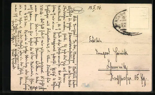 alte Ansichtskarte, gelaufen 1936, Briefmarke entfernt, Stempelspur, guter Zustand