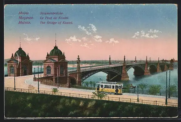 AK Mainz, Strassenbahn an der Strassenbrücke