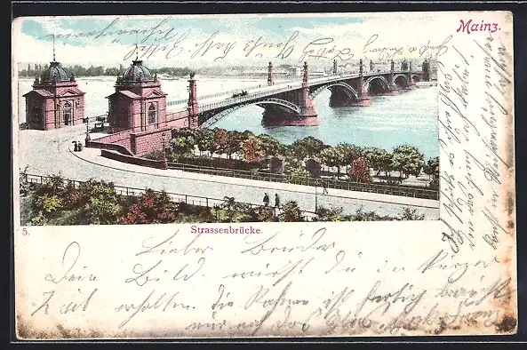 AK Mainz, Strassenbrücke mit Strasse