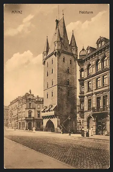 AK Mainz, Strassenpartie am Holzturm