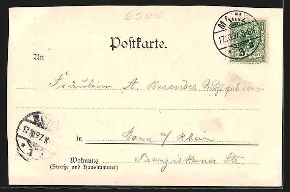 alte Ansichtskarte, gelaufen 1897, Kanten beschnitten