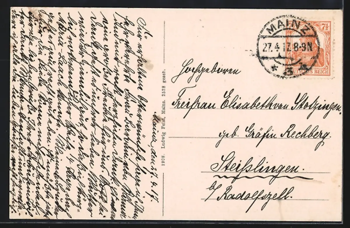 alte Ansichtskarte, gelaufen 1917, Stempelspur, guter Zustand
