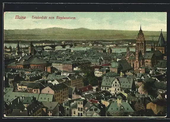 AK Mainz, Teilansicht mit Stephansturm