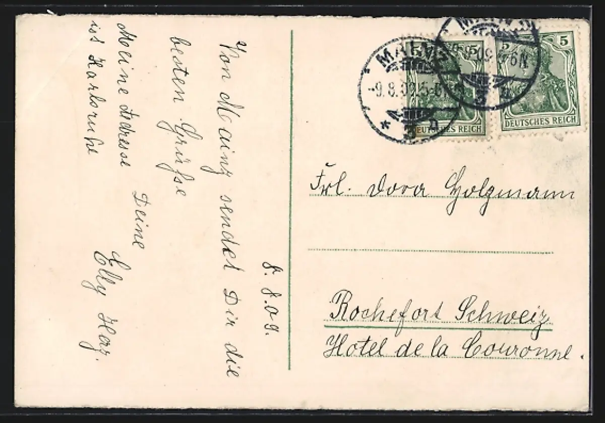 alte Ansichtskarte, gelaufen 1909, Eckknicke oben, guter Zustand