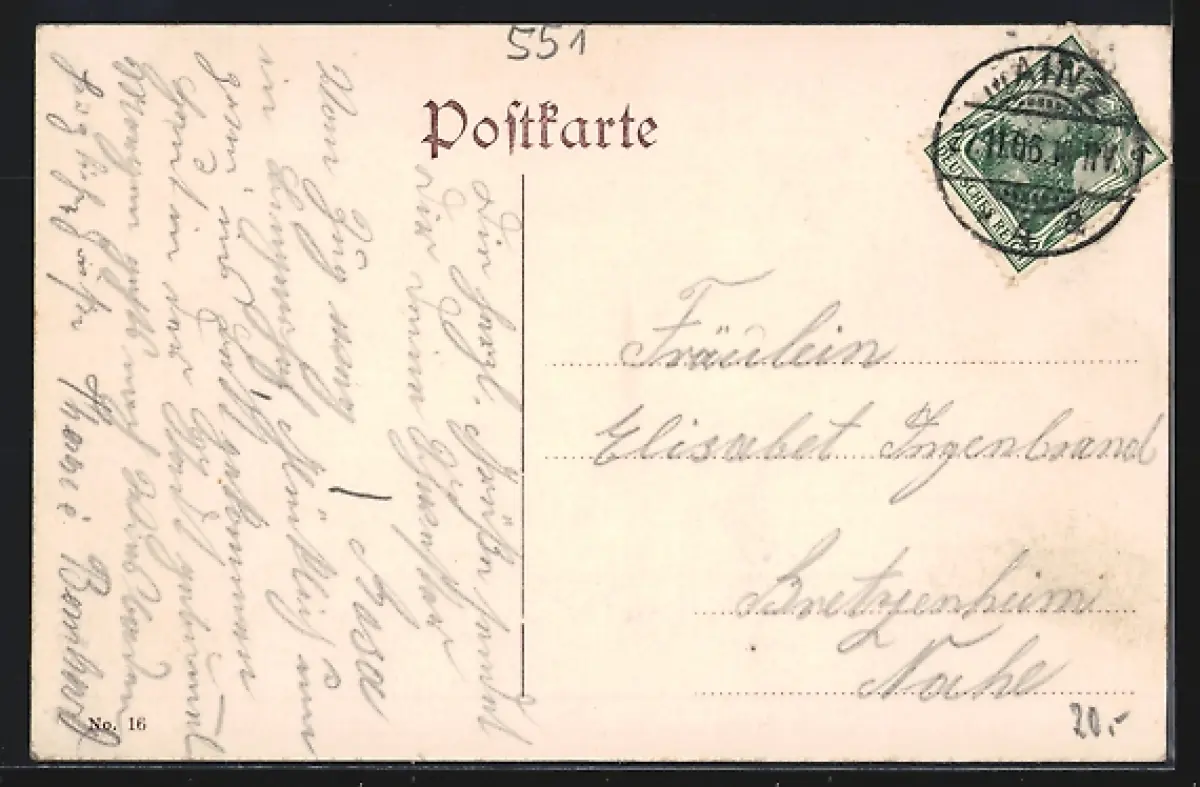 alte Ansichtskarte, gelaufen 1906, Stempelspur, guter Zustand