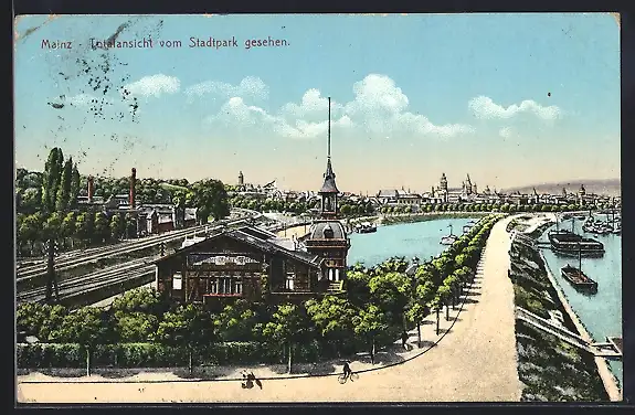 AK Mainz, Totalansicht vom Stadtpark gesehen