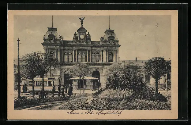 AK Mainz a. Rh., Hauptbahnhof mit Strassenbahn