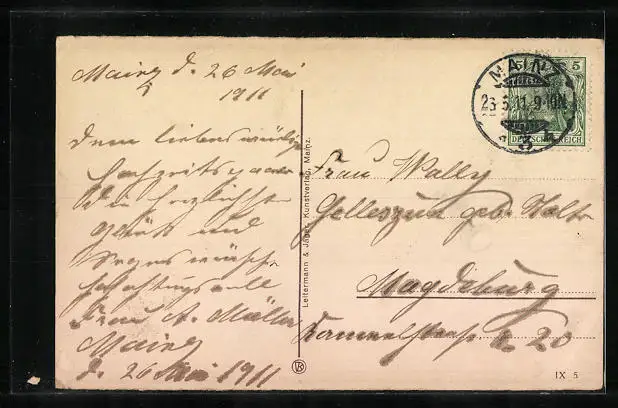 alte Ansichtskarte, gelaufen 1911, Eckknicke li. unten u. re. oben, Stempelspur, guter Zustand