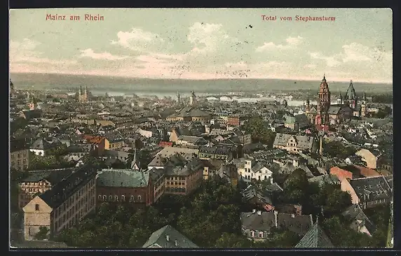 AK Mainz am Rhein, Ortsansicht vom Stephansturm