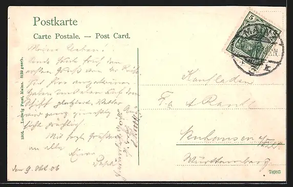 alte Ansichtskarte, gelaufen 1906, guter Zustand