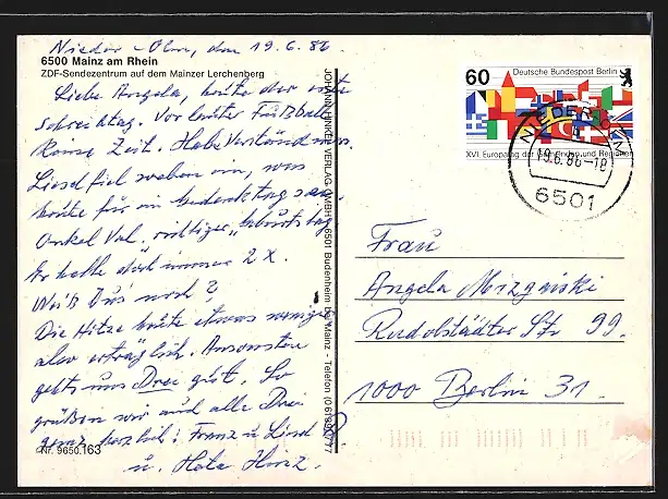 gelaufen 1986, rückseitig Oberflächenschaden, guter Zustand